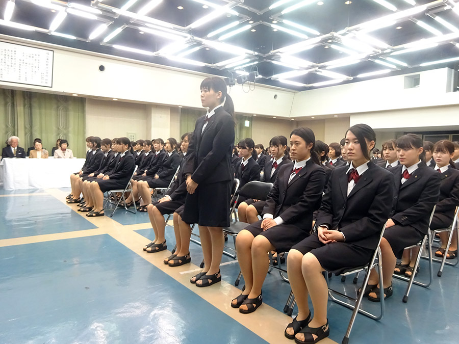 褒章授与では成績優秀賞5名、皆勤賞9名、精勤省5名が表彰されました。